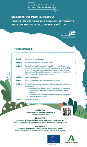 La Consejería de Sostenibilidad, Medio Ambiente y Economía Azul, a través del Fondo Europeo Agrícola de Desarrollo Rural, presenta la convocatoria 2023-2024 de su Plan Andaluz de Formación Ambiental. Durante el mes de octubre darán comienzo las primeras acciones de esta nueva edición que continuará desarrollándose hasta el mes de abril de 2024.